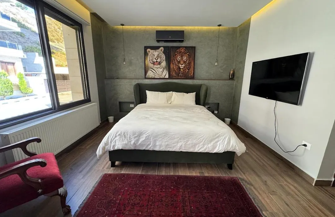 The 150 m² Bargos Cave Apartment is located 15 minutes' drive from Grand Husseini Mosque and a 25-minute walk from Housing Bank Garden. This 3-bedroom apartment also has a shared lounge overlooking the street.